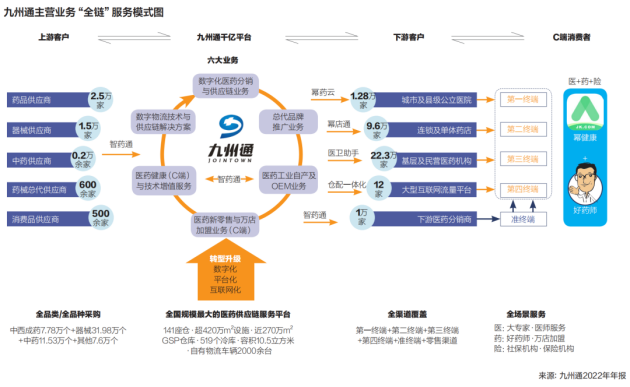 作为国内领先的医药流通、物流服务及医疗健康服务提供商,九州通构建了覆盖全国的医药供应链服务平台和全渠道、全场景的服务网络。集团已将消费医疗确立为核心战略引擎,依托其强大的供应链能力、资本优势和覆盖全国近3W家药店的零售终端,全力开拓大健康消费市场。